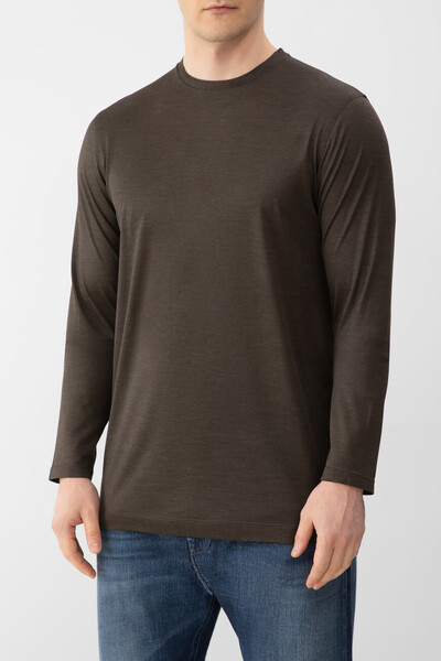 Лонгслив Zilli с традиционным круглым вырезом горловины. Для изготовления изделия полуприлегающего силуэта используется гладкий шёлк. Базовая модель, окрашенная в коричневый оттенок, отличается отсутствием знакового для бренда декора и выгодно сочетается с пятикарманными джинсами из той же коллекции.