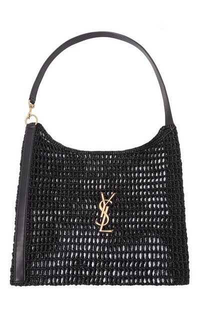 Ажурную сумку Oxalis связали крючком из рафии. Аксессуар с кожаной отделкой и металлической монограммой Кассандра дополнили плечевым ремнем с карабином.