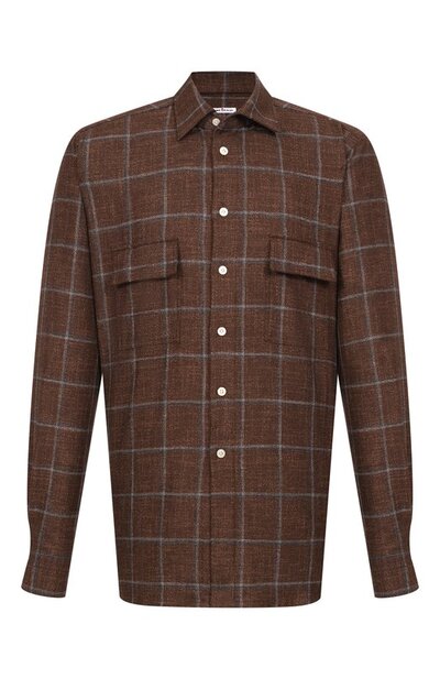 Рубашка из шерсти и шелка Kiton ucrrlk0118g04 (коричневый, lpn31136167)