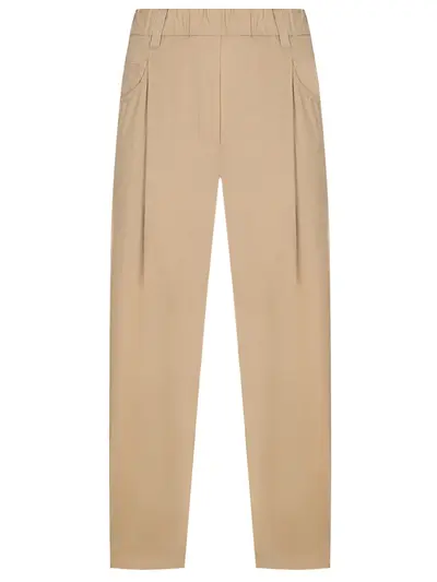 -Бежевые укороченные брюки из хлопка от BRUNELLO CUCINELLI.