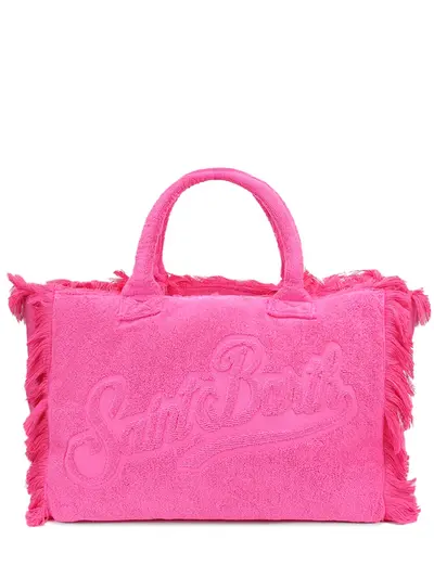 -Розовая сумка из хлопка с махровой фактурой от MC2 SAINT BARTH. -Модель с двойными верхними ручками, карманом внутри, декором густой бахромой и логотипом бренда спереди.