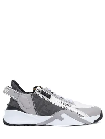 -Кроссовки из кожи и текстиля c жаккардовым узором FF от FENDI.