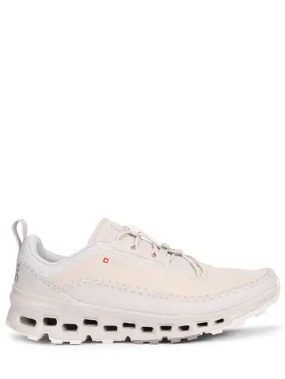 -Бежевые кроссовки из плотного водоотталкивающего текстиля от ON RUNNING. -Модель с округлым прорезиненным мысом, функциональной шнуровкой, декоративными стежками, логотипами на язычке и заднике. -Кроссовки дополнены нескользящей протекторной подошвой Sticky Missiongrip™ с запатентованной амортизирующей системой CloudTec®.