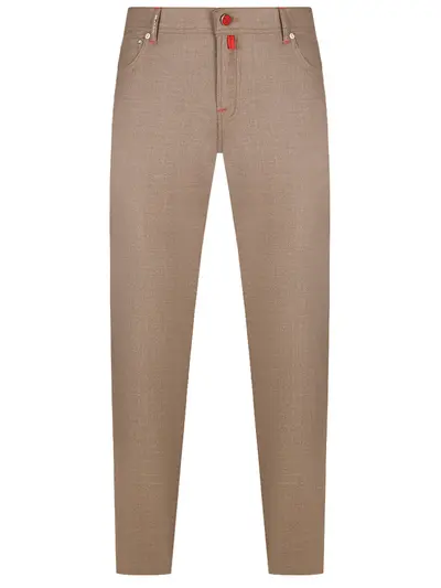 -Модель с кроем по фигуре, стандартной посадкой, поясом со шлевками, прорезными и накладными карманами, застежкой на молнию и пуговицу, нашивкой с логотипом бренда сзади.