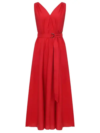 -Красное платье из жатого хлопкового поплина от BRUNELLO CUCINELLI.