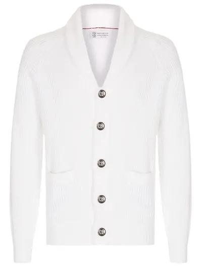 -Белый вязаный кардиган из хлопка от BRUNELLO CUCINELLI.