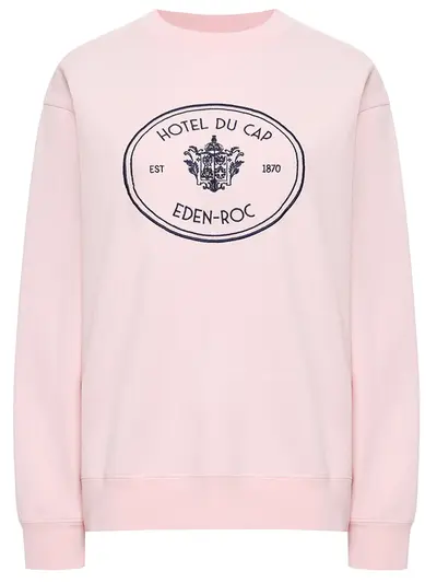 -Розовая толстовка-оверсайз из хлопка от SPORTY&RICH. -Модель свободного кроя со спущенной линией плеча, длинными рукавами, рельефными манжетами, поясом и отделкой круглого выреза горловины, вышитым логотипом бренда на груди и спине.