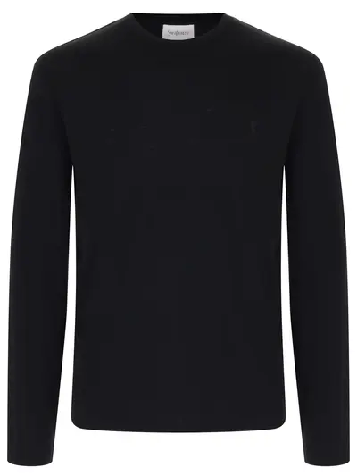 -Черный лонгслив из мягкого трикотажа на основе тонкой шерсти от SAINT LAURENT.