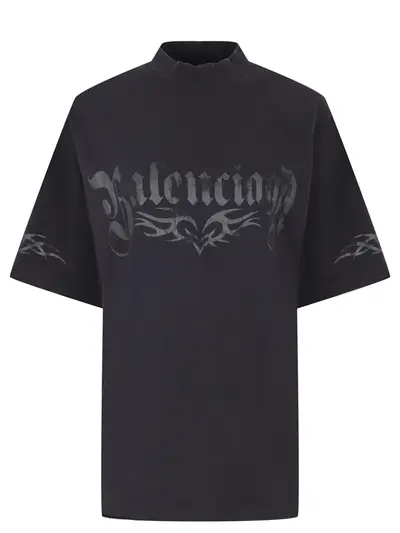 -Черная футболка-оверсайз из хлопка от BALENCIAGA.