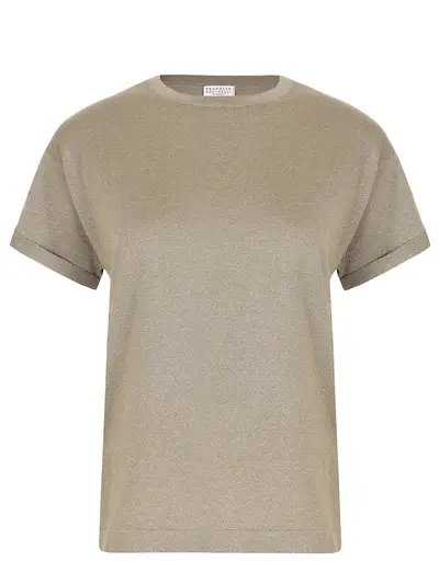 -Зеленая футболка из мягкого трикотажа купажированного состава с люрексной нитью от BRUNELLO CUCINELLI.