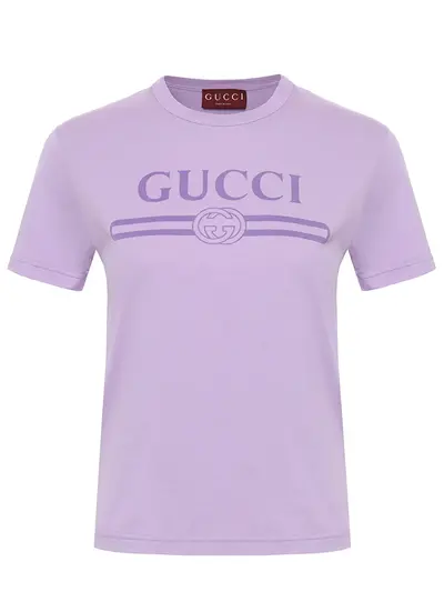 -Сиреневая футболка из мягкого хлопка от GUCCI.