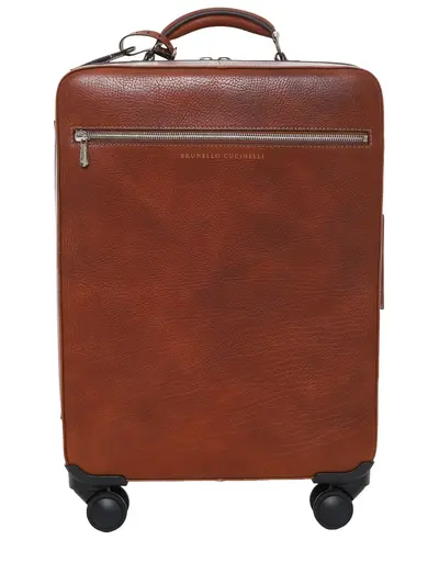 -Коричневый чемодан из натуральной кожи от BRUNELLO CUCINELLI.