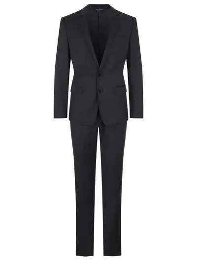 -Серый в полоску костюм из шерсти от DOLCE&GABBANA.