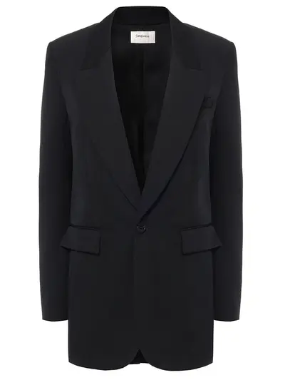 -Черный однобортный пиджак из шерсти от SAINT LAURENT.