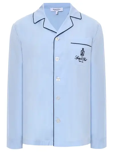 -Голубая рубашка из мягкого хлопка от SPORTY&RICH. -Модель свободного кроя с длинными рукавами, манжетами, отложным воротником, нагрудным накладным карманом, застежкой на пуговицы, контрастной окантовкой деталей, вышитым логотипом бренда на груди.