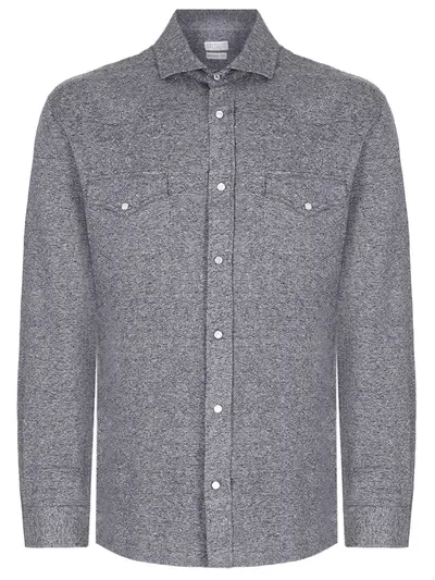 -Серая меланжевая рубашка купажированного состава от BRUNELLO CUCINELLI.