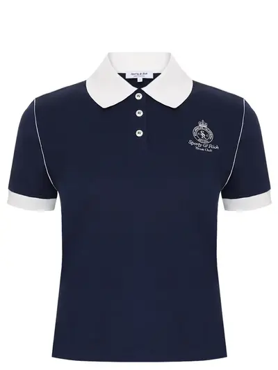 -Синее поло из стрейч-хлопка от SPORTY&RICH. -Модель полуприлегающего силуэта с короткими рукавами, контрастными манжетами и отложным воротником, застежкой на пуговицы и логотипом бренда на груди.