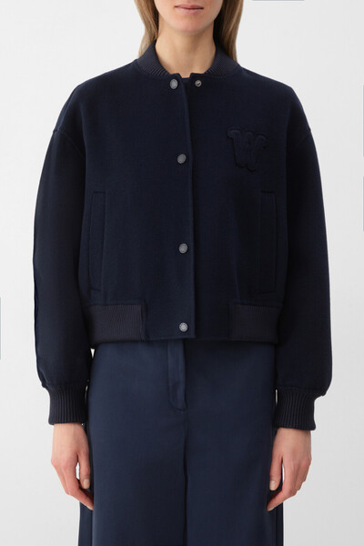 Бомбер Max Mara выполнен из двухсторонней шерстяной ткани. Модель сочетает современный силуэт с практичностью и комфортом. Немного свободная посадка придаёт изделию актуальный объёмный вид. Трикотажный воротник, манжеты и фирменная застёжка на клёпки спереди подчёркивают структурированный образ. Декоративный войлочный патч на груди напоминает о принадлежности к бренду.