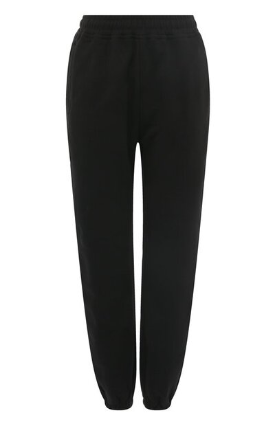 Черные джоггеры с классической посадкой добавят спортивной динамики повседневному образу с свитшотом, сапогами и сумкой в тон и бежевым тренчем. Модель с широким эластичным поясом и двумя карманами выполнили из мягкого хлопкового трикотажа, создающего комфортный для тела микроклимат и не теряющего со временем форму и цвет. На принадлежность марке деликатно намекает вышитый оранжевой нитью логотип.