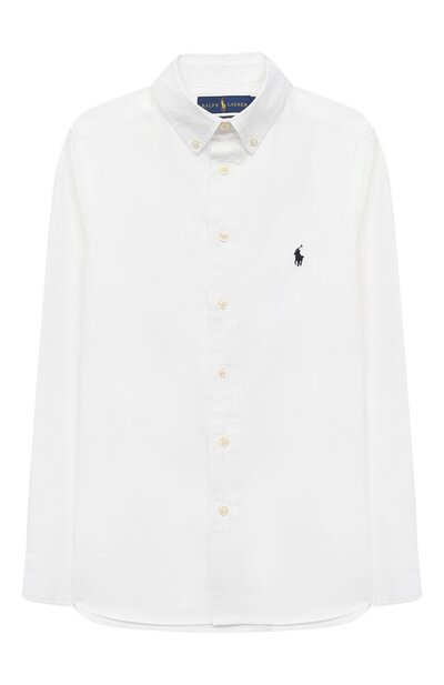 Белая рубашка станет основой школьного образа. Для пошива модели с длинными рукавами и воротником button down мастера бренда использовали приятный на ощупь хлопок с микроузором. Ткань не электризуется, не вытягивается на локтях и не пожелтеет со временем. Спереди темно-синей нитью вышили эмблему марки в виде игрока в конное поло.