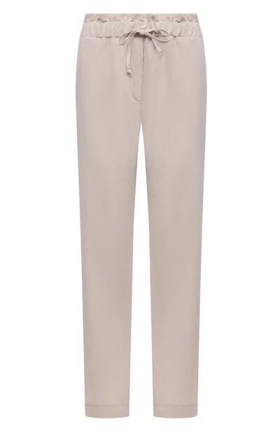 Светло-бежевые брюки, которые Пьетро Брунелли включил в коллекцию сезона весна-лето, выглядят максимально расслабленно. В этом им подыгрывают слегка укороченный свободный крой и мягкий материал. Лен в составе ткани позволяет телу дышать, а шелковистая вискоза отвечает за прочность и деликатный блеск.