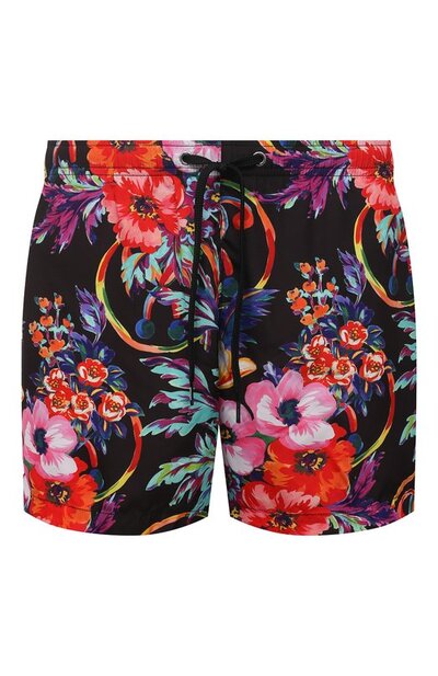 В черных плавках-шортах поработали и над яркостью, и над комфортом. За первое отвечает цветочный принт, за второе — легкий полиэстер, который быстро сохнет, а в мокром состоянии не прилипает к телу. Ткань не боится солнца, хлора и соли, поэтому вещь надолго сохранит сочность красок. Посадка регулируется шнурком в поясе-кулиске.