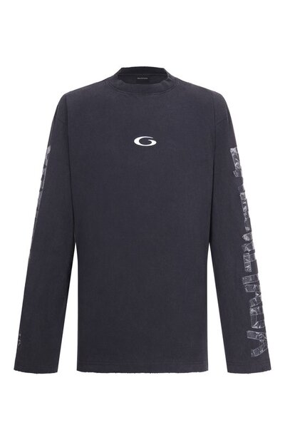 Хлопковый лонгслив Balenciaga 850420/ttve5 (серый, lpn31141214)
