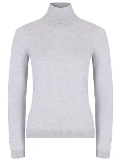 -Серая водолазка из мягкой шерсти от GRAN SASSO. -Модель полуприлегающего силуэта с длинными рукавами, рельефными манжетами, поясом и высоким воротником с отворотом. -Водолазка заменит офисную рубашку или составит повседневный комплект с джинсами.