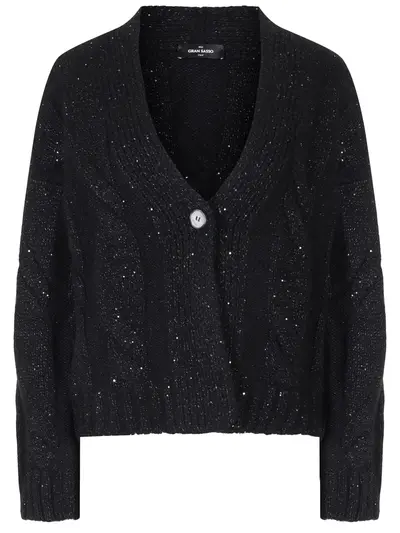 -Черный вязаный кардиган из пряжи купажированного состава на основе смесовой шерсти альпака от GENTRYPORTOFINO.