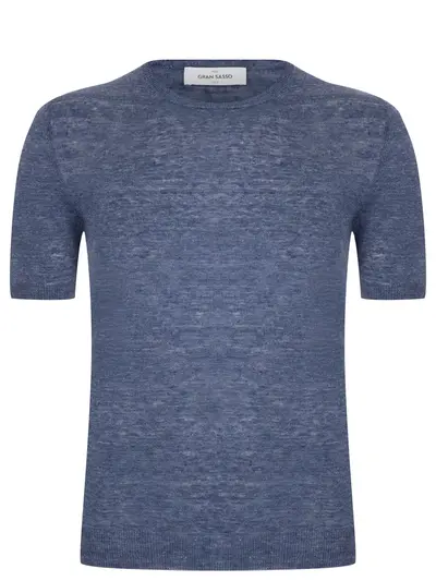 -Футболка из льна в синем цвете от GRAN SASSO.