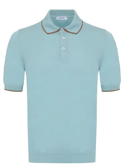 -Бирюзовое трикотажное поло из мягкого хлопка от GRAN SASSO.