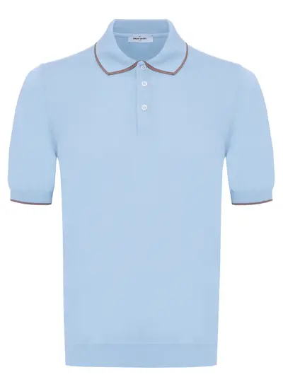 -Голубое трикотажное поло из мягкого хлопка от GRAN SASSO.