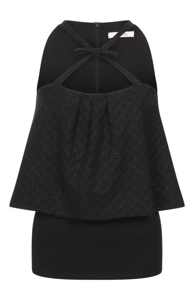 Укороченный топ Sparkling Emotions свободного кроя выполнили из стрейчевого трикотажа Punto Milano на основе вискозы. Модель с бантом на перекрещивающихся спереди бретелях и длинным пуллером-лентой на молнии сзади декорировали мерцающей цветочной вышивкой.