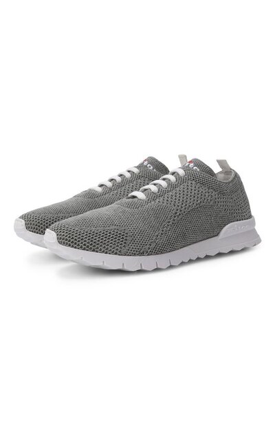 Кроссовки из трикотажа с узорами разной плотности установили на контрастную протекторную подошву. Язычок модели с кожаной внутренней отделкой украсили вышитым логотипом.