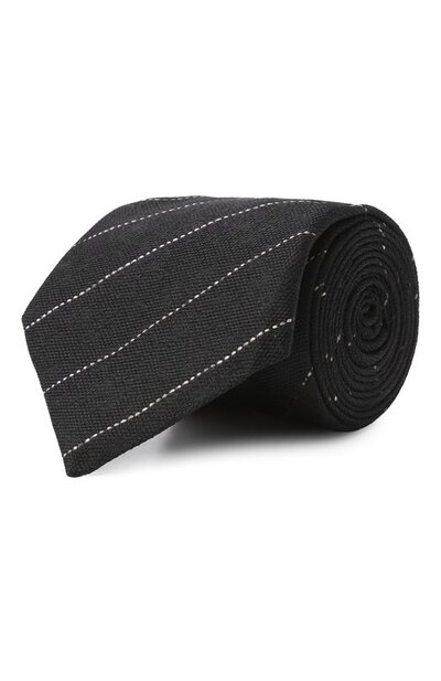 Галстук в диагональную пунктирную полоску выполнили из шелка. Благодаря эластичному ручному шву сзади модель хорошо держит вертикаль и не перекручивается.