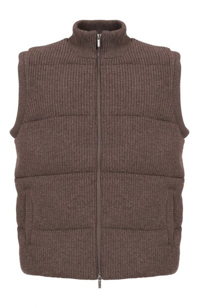 Жилет Leeds с полиэстеровым подкладом выполнили ребристой вязкой из шерсти. Модель с воротником-стойкой и боковыми карманами застегивается встречной молнией.