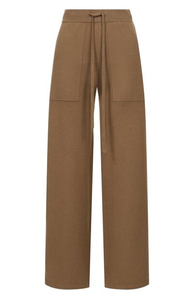 Свободные брюки с эластичным поясом-кулиской вошли в коллекцию Where the Heart Leads, созданную совместно с брендом 1436. Модель с боковыми карманами выполнили из монгольского baby-кашемира с волокнами толщиной 14,5 микрон и длиной 36 миллиметров. Сзади разместили фирменную контрастную строчку с ниспадающими нитями на концах.