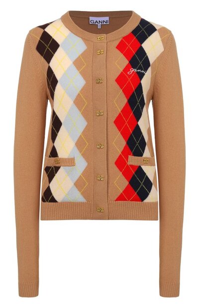 Кардиган из шерсти и кашемира Ganni a1070055 (бежевый, lpn31146795)