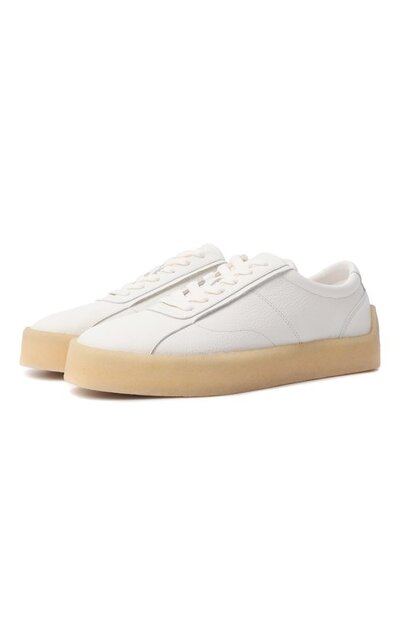 Кеды Prodi-gy из зернистой кожи установили на широкую резиновую подошву, которую завели на задник. Модель украсили тиснеными логотипами марки.