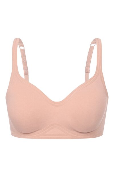 Бра-топ с силиконовыми полосками, заменяющими косточки, выполнили по технологии 3W из двухслойного хлопка стрейч. Модель с регулируемыми брендированными бретелями и съемными внутренними чашечками застегивается потайными крючками на поясе сзади.