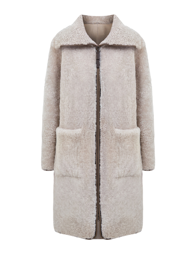 Brunello Cucinelli Дубленое пальто ручной работы из мягкой кожи и овчины 265383 (бежевый, lpn31149325)