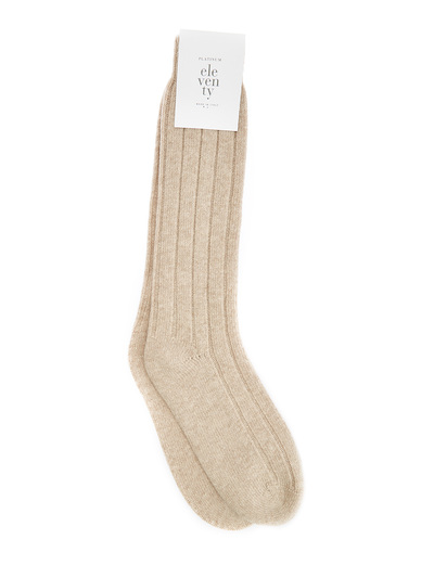 Eleventy Высокие носки из шерсти и кашемира в рельефную полоску 264171 (бежевый, lpn31149483)