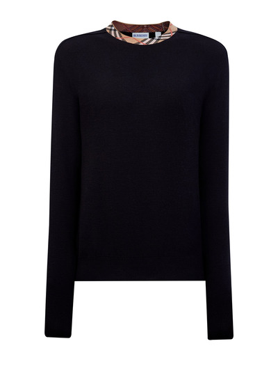 Джемпер из тонкой шерсти с воротом Burberry Check 265158 (чёрный, lpn31149642)