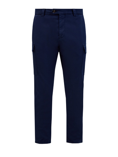 Brunello Cucinelli Брюки из эластичного хлопкового габардина с карманами-карго 265256 (синий, lpn31149652)
