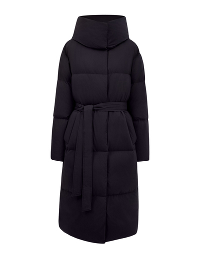 Hetrego Удлиненный пуховик из влагозащитного нейлона с поясом в тон 265350 (чёрный, lpn31149691)