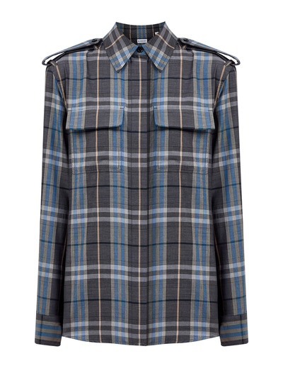 Хлопковая рубашка в стиле милитари с принтом Burberry Check 265378 (синий, lpn31149698)