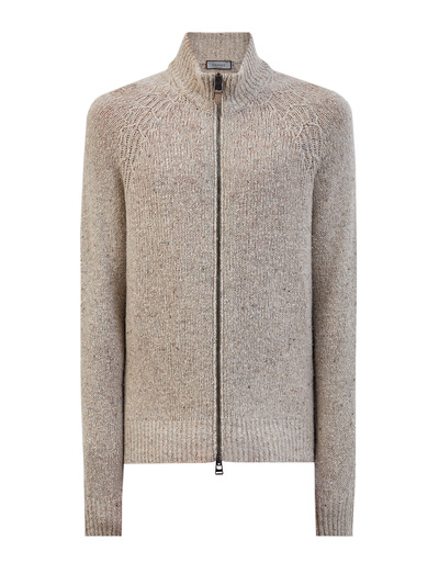 Canali Кардиган из фактурной шерстяной пряжи с кожаным пуллером 266094 (бежевый, lpn31149807)