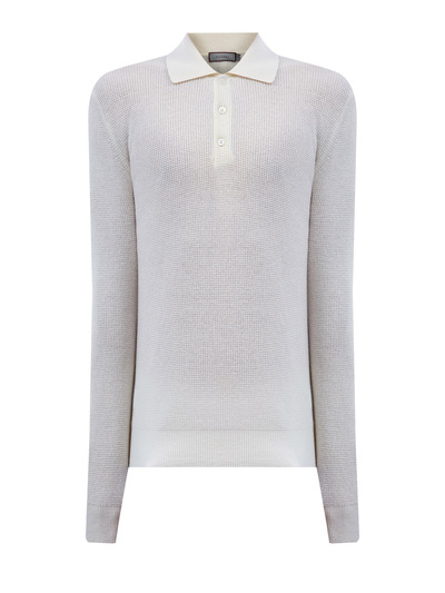 Canali Джемпер из шерсти и кашемира с замшевой деталью 266103 (белый, lpn31149812)