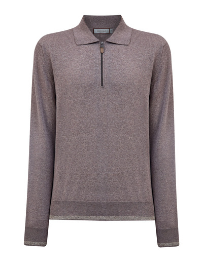 Canali Джемпер-поло из меланжевой шерсти с застежкой на молнию 266102 (коричневый, lpn31149842)