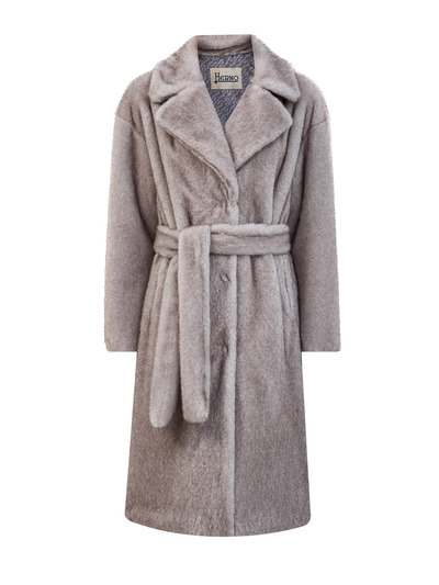 Herno Пальто из эко-меха с V-образным вырезом и поясом 266580 (серый, lpn31149888)